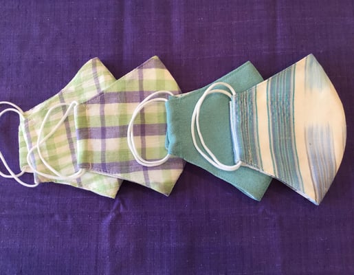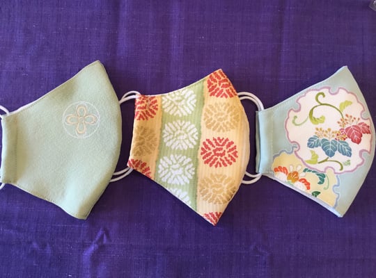 着物の端切れからマスクのオーダーです。すべて一度洗って作っています。