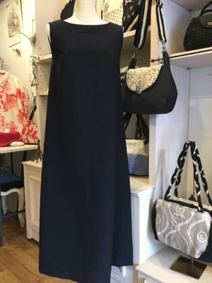 透けるようなウールのロングジャケットとノースリーブのワンピース