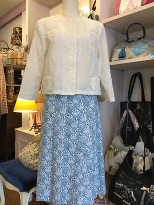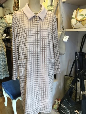 ワンピースとコートの作品です。コートの作品です。ワンピースは薄いブルーの布で裏打ちをしてしっかりとした布にしてから仕立てました。コートは一重仕立てで柔らかく仕立てました。