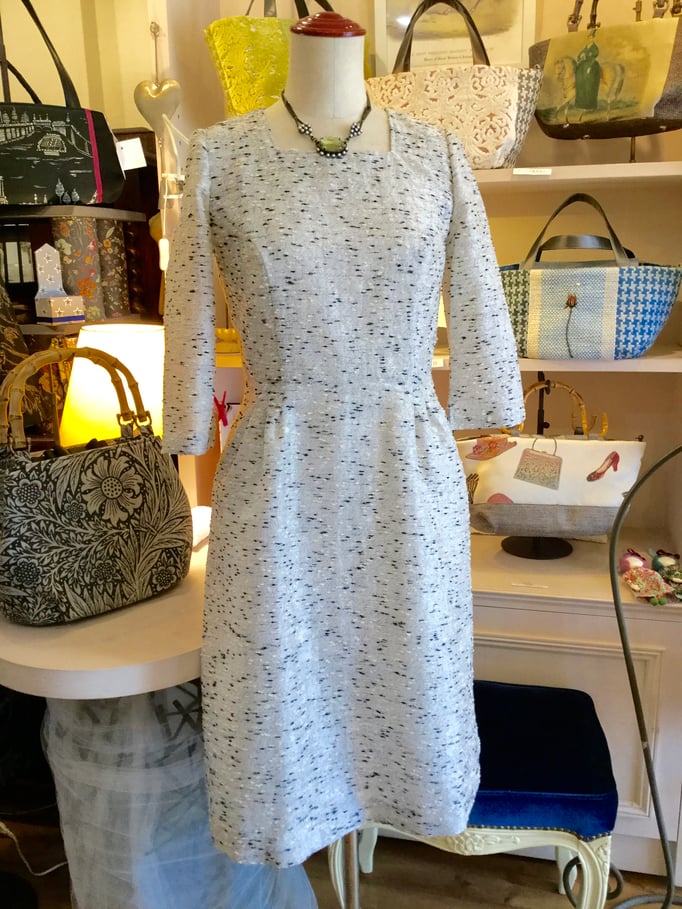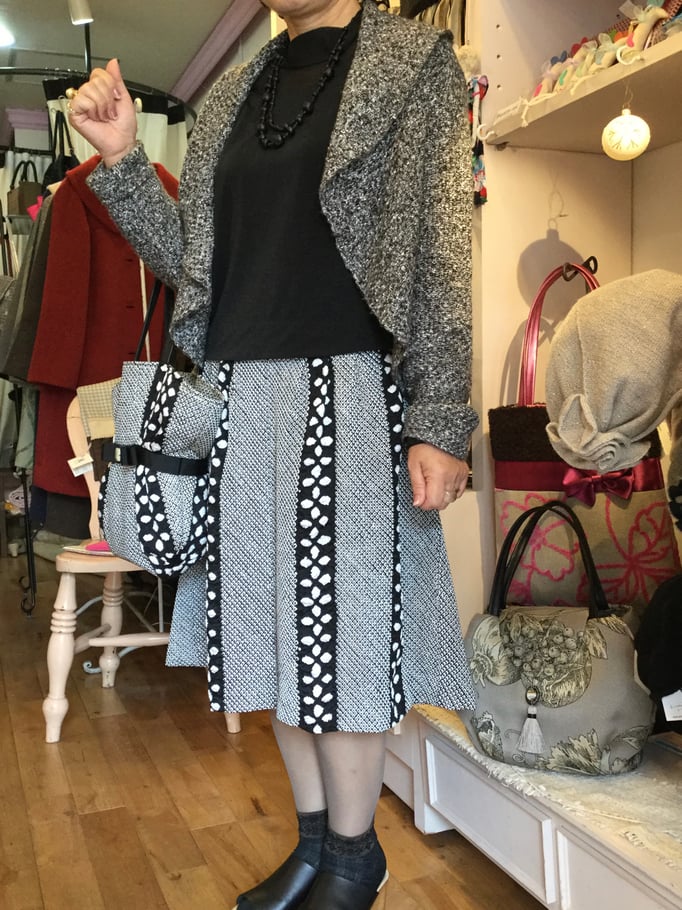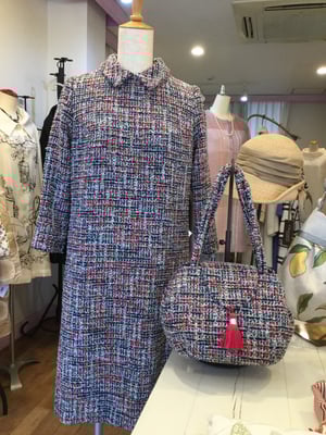 シルクの布で、シンプルなワンピースとお揃いのバッグ!