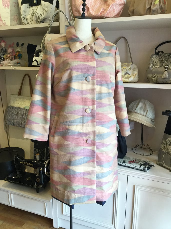 大島紬 と呂の着物布からのリメーク コート