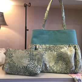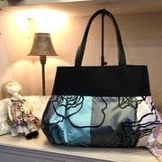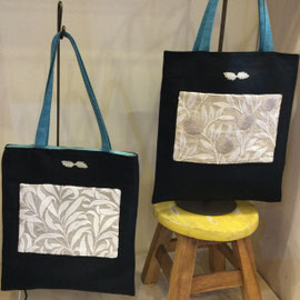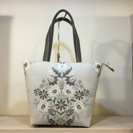 お客様の帯と着物地や、お客様が刺繍をなさった物をバッグにした作品です。