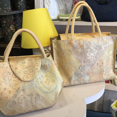シェソワでは、帯布、その他、お客様の布地でオーダーメードのバッグをお作りしております。店内にあるバッグを見ていただき、お客様とご相談しながらお作りをいたします。